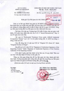 Sửa đổi tại ô số 4 trên C/O từ “Signature of Authorised Signatory of the Importing Country” thành “Signature of Authorised Signatory of the Customs Authority of the Importing Country”.